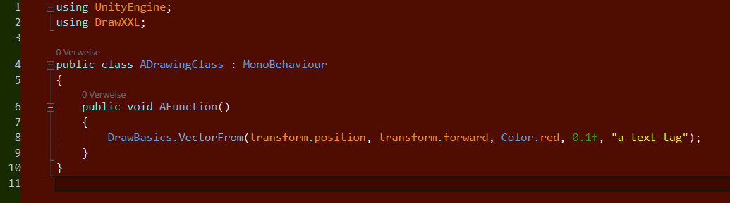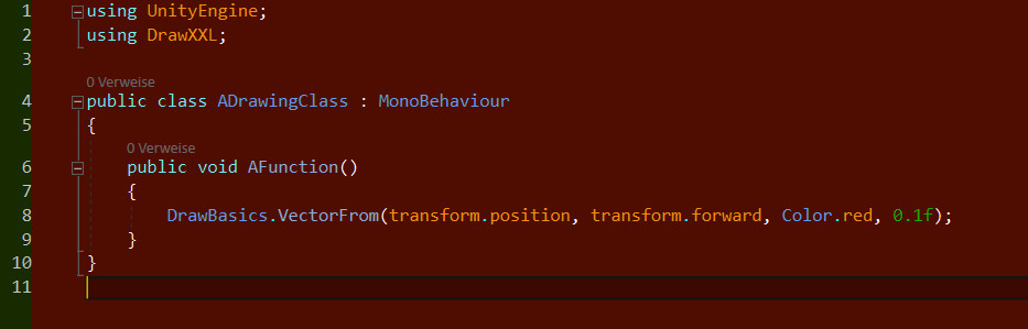 The full potential and flexibility of Draw XXL is leveraged when drawing from code. Draw XXL offers a static drawing library where you can call drawing functions from anywhere in your code without initializing objects - as known from using Unitys Debug.DrawLine().