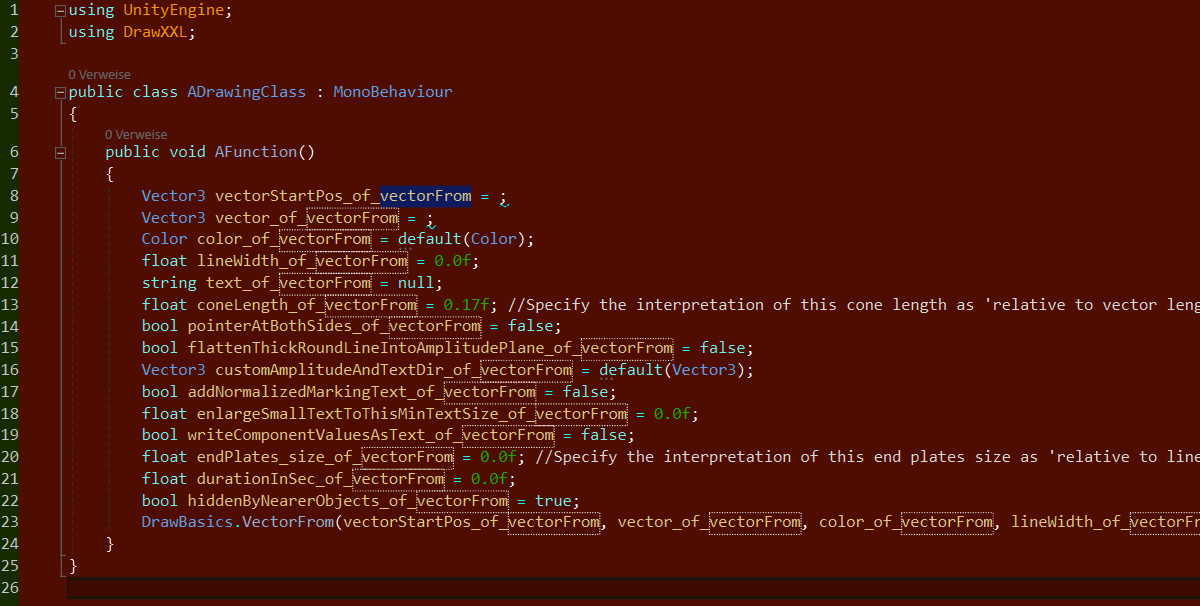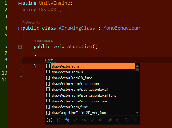 So in the above example it was enough to type in only the leading characters of every word: "drawVectorFrom".